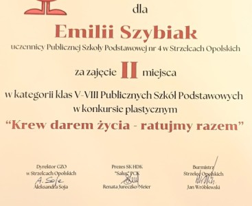 28.11.2025 odbyło się spotkanie honorowych krwiodawców w sali strzeleckiego ratusza oraz gala konkursu plastycznego "Krew darem życia" promującego krwiodawstwo. W sumie do konkursu zgłoszono aż 196 prac, które oceniano w kategorii klas 1-4 oraz klas 5-8.