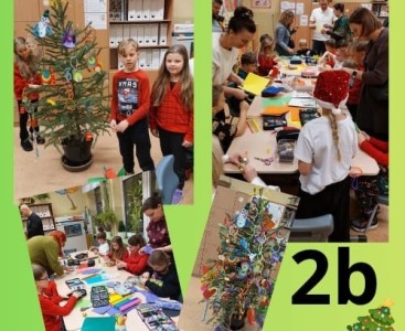 Uczniowie klasy 2b po kiermaszu szkolnym zorganizowali wyjątkowe spotkanie przy choince, na które wraz z wychowawczynią panią Ewą Stanuch-Dyduch zaprosili swoich rodziców.